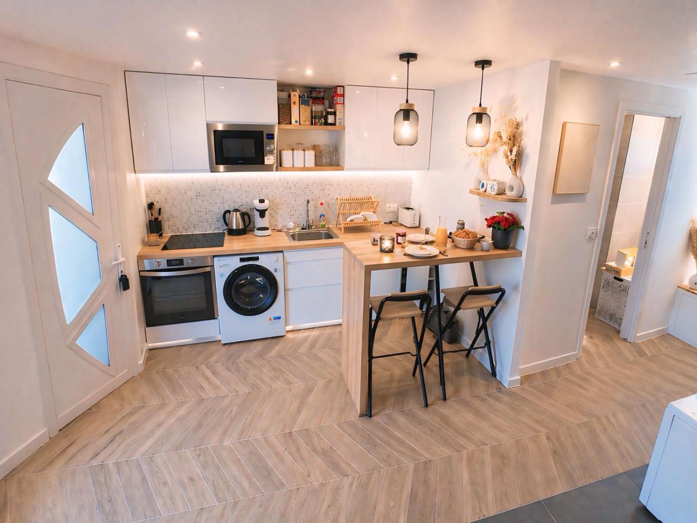 Appartement 1 Chambre Deluxe. The hot tub and spa bath are the special features of this apartment. Featuring a private entrance, this air-conditioned apartment comprises a kitchenette, 1 bedroom and 1 bathroom with a walk-in shower and slippers. In the kitchenette, guests will find a stovetop, a refrigerator, kitchenware and a microwave. The apartment features tiled floors, a seating area with a flat-screen TV, a washing machine, a tea and coffee maker as well as a quiet street view. The unit offers 1 bed.