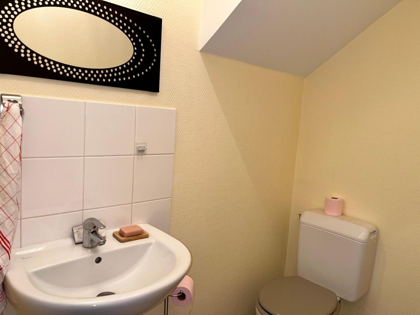 Vous bénéficierez d’une salle de bains commune entièrement équipée avec une douche et un sèche-cheveux.