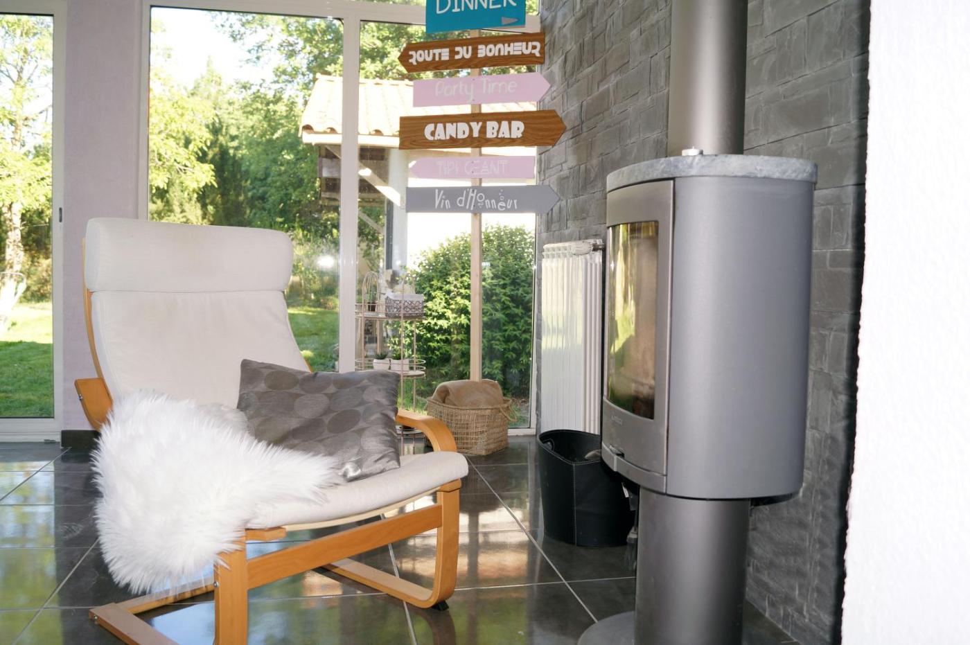 Chambre Quadruple avec Salle de Bains Privative. The private pool and fireplace are the special features of this quadruple room. The spacious quadruple room features air conditioning, a private entrance, a terrace with garden views as well as a private bathroom boasting a walk-in shower. The unit has 2 beds.