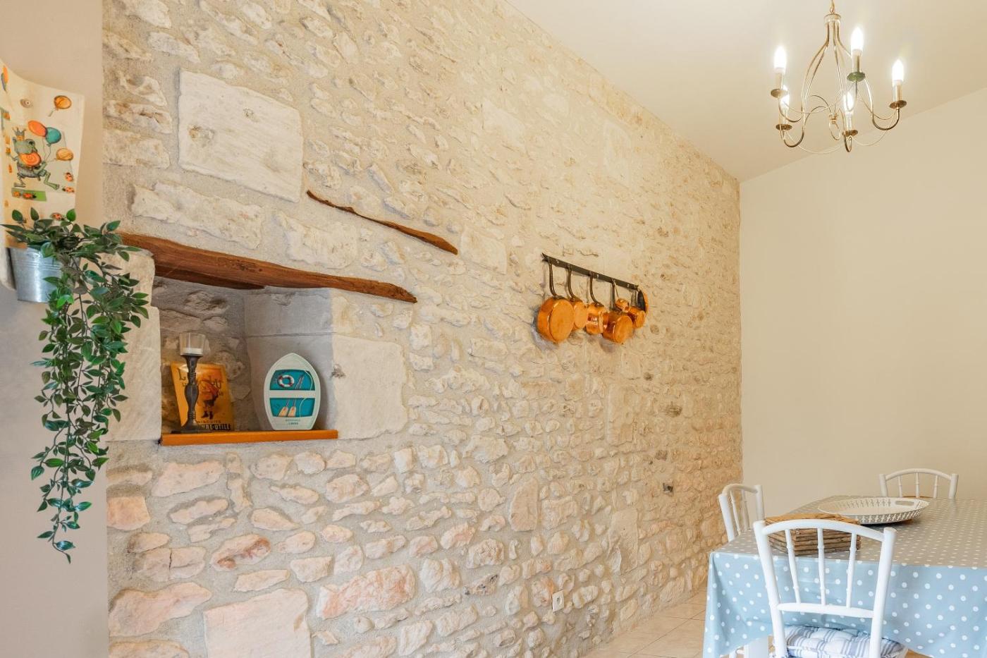 Maison 2 Chambres. The fireplace is the standout feature of this holiday home. This holiday home includes 1 living room, 2 separate bedrooms and 1 bathroom with a shower and free toiletries. Guests can make meals in the kitchen that is fitted with a dishwasher, kitchenware, an oven and a microwave. Boasting a terrace with garden views, this holiday home also offers a washing machine and a TV. The unit has 4 beds.