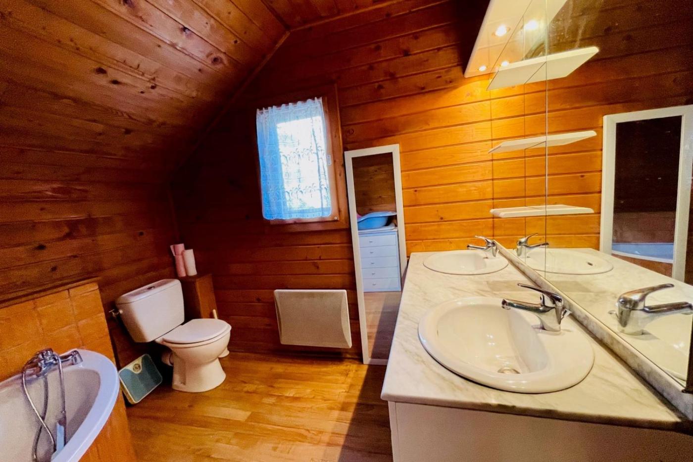 Chalet. Ce chalet possède une cheminée. Ce chalet spacieux comprend 4 chambres, une cuisine et une terrasse. Les 2 salles de bains sont pourvues d’une baignoire ou d’une douche. La cuisine entièrement équipée est munie d’un réfrigérateur, d’un lave-vaisselle et d’un four. Des ustensiles de cuisine sont fournis. Doté dun balcon avec vue sur la ville, ce chalet dispose également dun lave-linge et dune télévision. Ce logement comporte 4 lits.