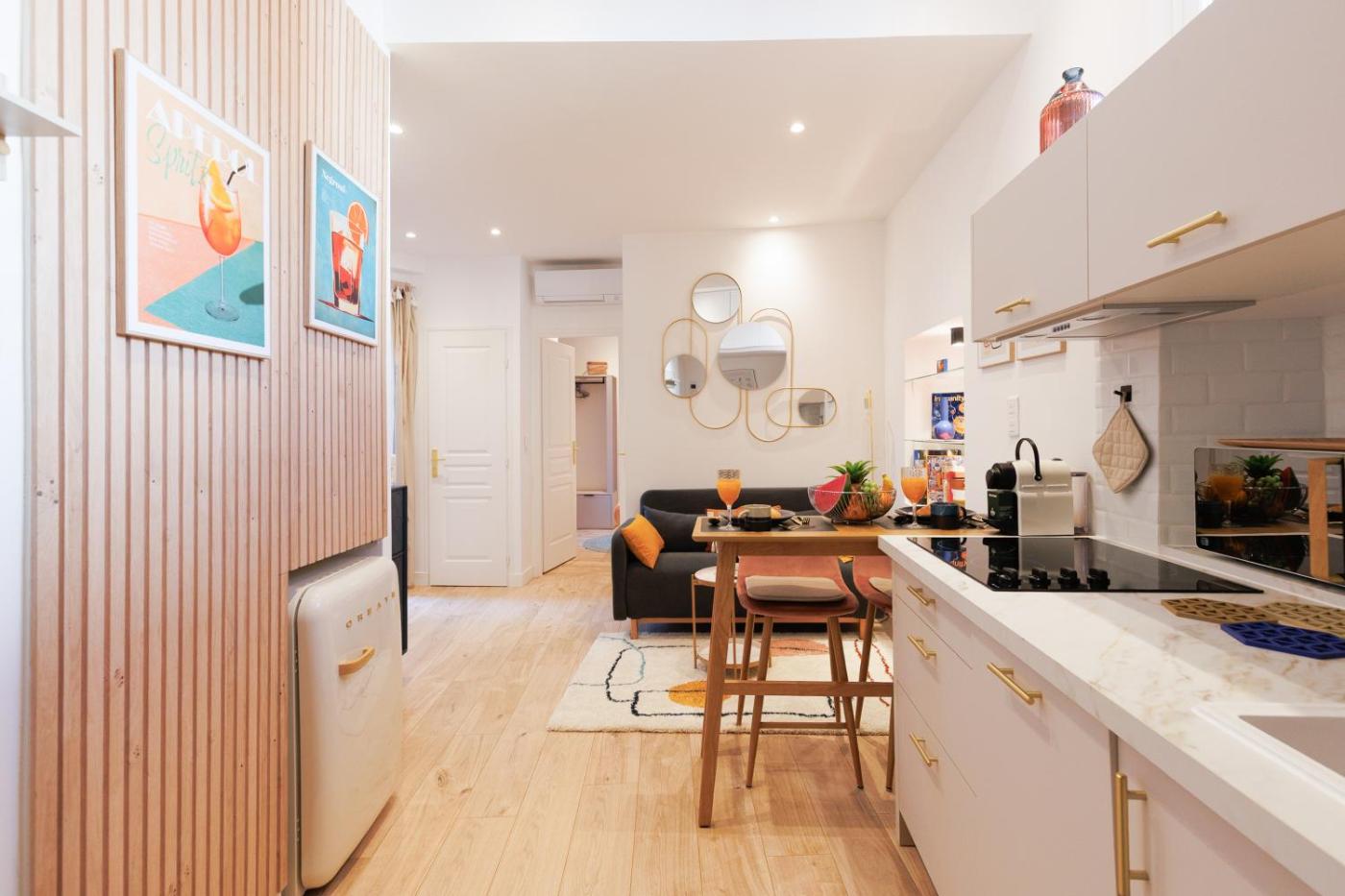 Appartement 1 Chambre. This air-conditioned apartment features 1 living room, 1 separate bedroom and 1 bathroom with a shower. In the well-fitted kitchen, guests will find a stovetop, a refrigerator, a dishwasher and kitchenware. A seating area with a flat-screen TV, a washing machine and a balcony are offered in this apartment. The unit has 1 bed.