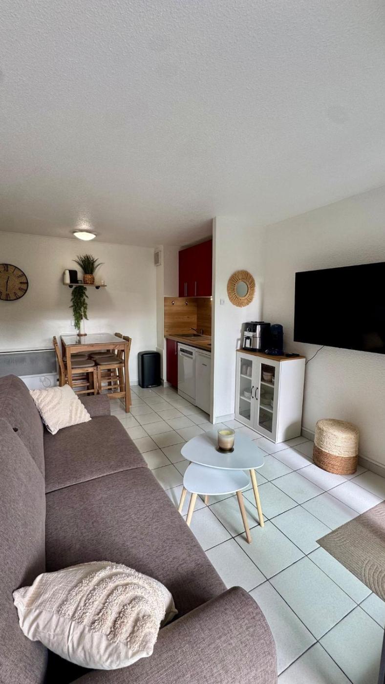 Appartement-Studio avec 1 Lit Double. Featuring 1 bedroom and 1 bathroom with a shower, this apartment offers a well-fitted kitchen and a terrace. The well-equipped kitchen features a stovetop, a refrigerator, a dishwasher and kitchenware. This apartment has a coffee machine, a wardrobe, flat-screen TV, as well as chocolate for guests. The unit has 2 beds.
