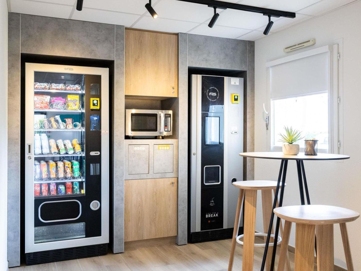Un petit-déjeuner buffet est servi chaque matin sur place. Des rafraîchissements et des collations sont par ailleurs disponibles dans les distributeurs automatiques. Le personnel de létablissement se tient à votre disposition 24h24.