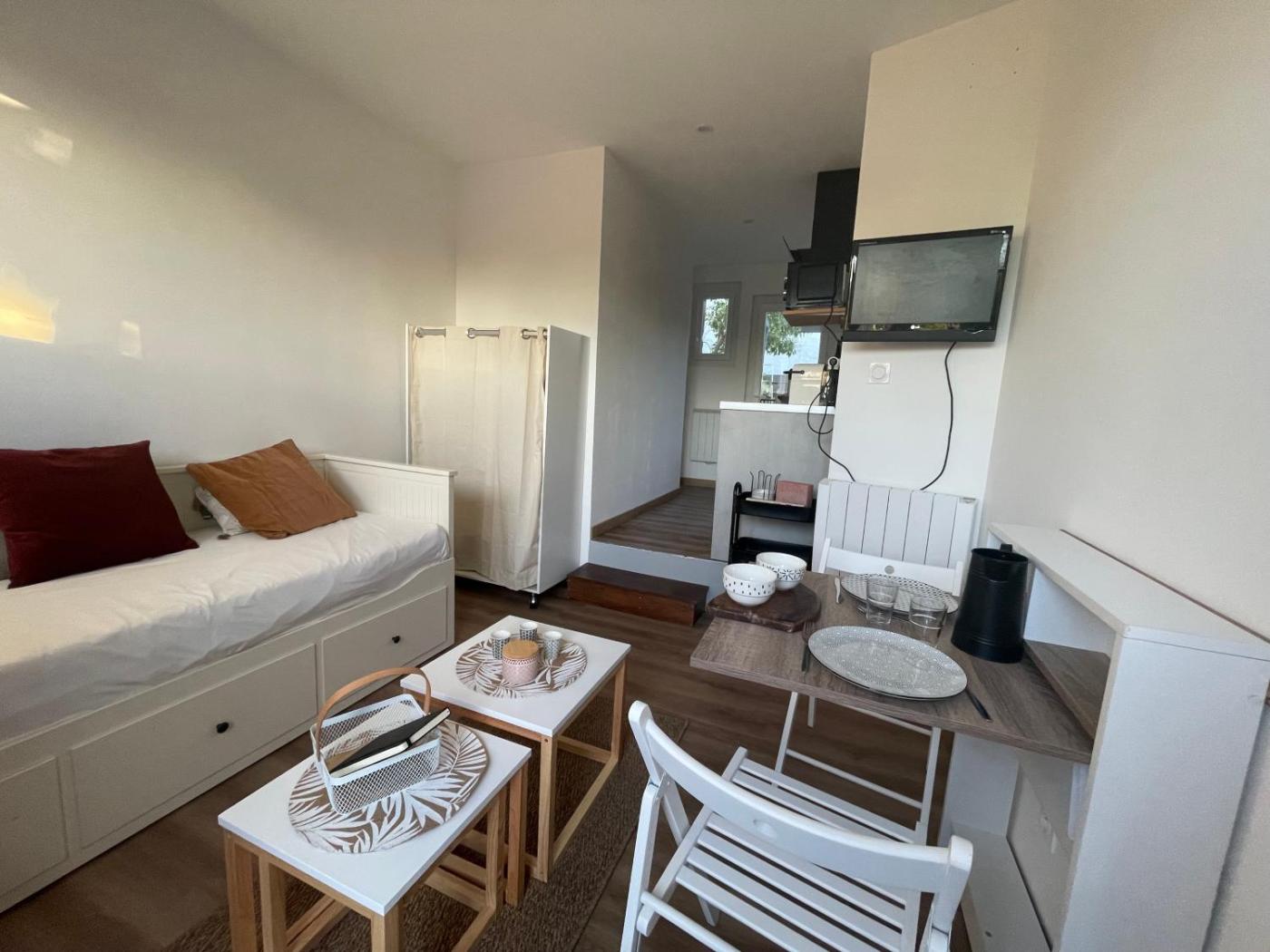 Appartement 1 Chambre. The well-fitted kitchenette has a stovetop, a refrigerator, kitchenware and a microwave. This apartment features a private entrance, a tea and coffee maker, a flat-screen TV and a terrace. The unit offers 1 bed.