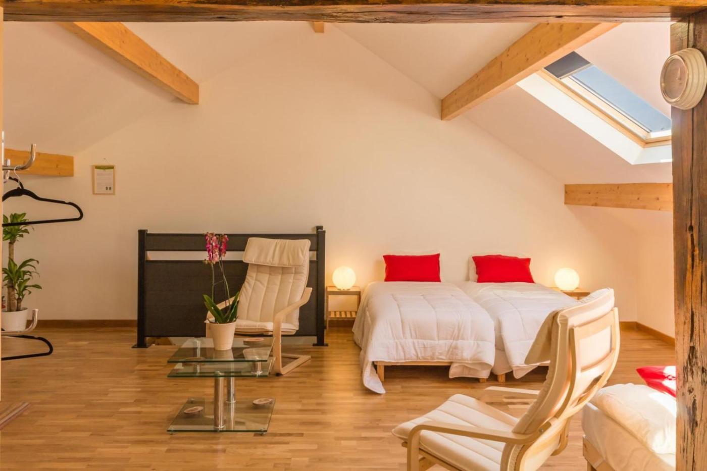 Chambre Familiale. The family rooms kitchen is available for cooking and storing food. The unit offers 4 beds.