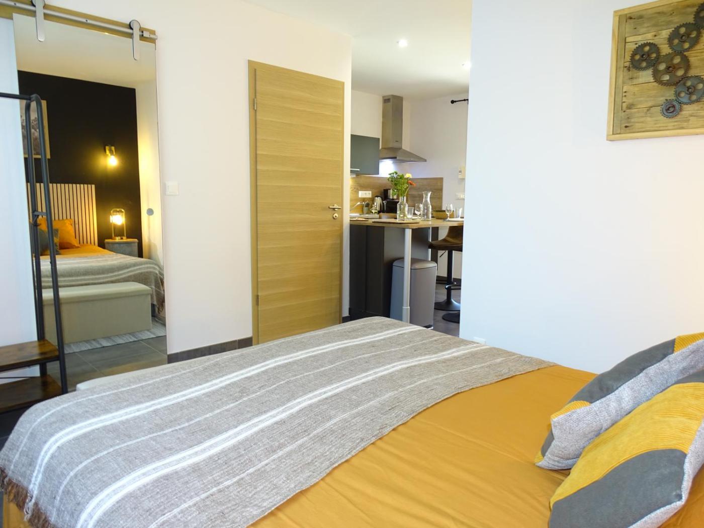 Appartement 1 Chambre. Boasting a private entrance, this air-conditioned apartment comes with 1 living room, 1 separate bedroom and 1 bathroom with a walk-in shower and a hairdryer. Guests will find a stovetop, a refrigerator, a dishwasher and kitchenware in the well-equipped kitchen. The apartment also includes a barbecue. Featuring a terrace with garden views, this apartment also features soundproof walls and a flat-screen TV. The unit has 1 bed. ;