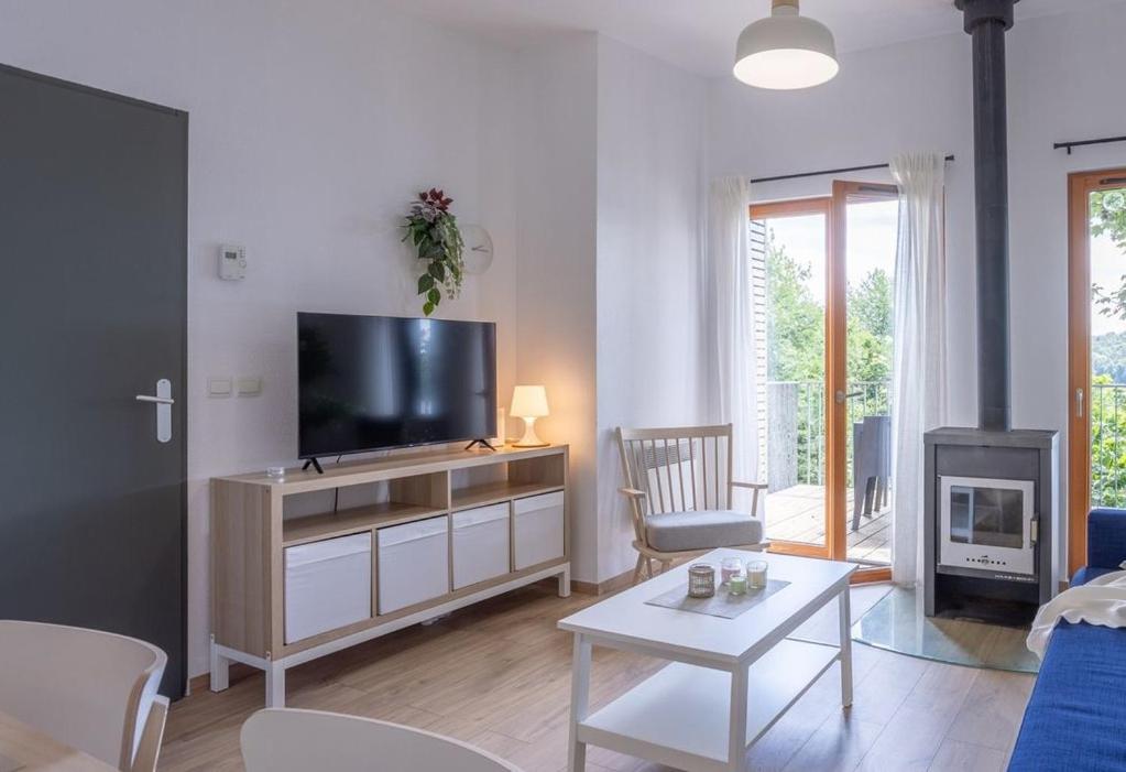 Ce chalet en rez-de-chaussée comporte 2 chambres, une cuisine bien équipée avec un réfrigérateur et un lave-vaisselle, un salon et une télévision à écran plat. Des serviettes et du linge de lit sont disponibles.