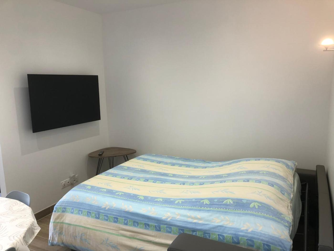 Appartement 1 Chambre. Featuring a private entrance, this air-conditioned apartment consists of 1 living room, 1 separate bedroom and 1 bathroom with a walk-in shower and a hairdryer. Guests will find a stovetop, a refrigerator, kitchenware and a microwave in the kitchen. The apartment also offers a barbecue. Boasting a terrace with garden views, this apartment also provides soundproof walls and a flat-screen TV with streaming services. The unit offers 2 beds.