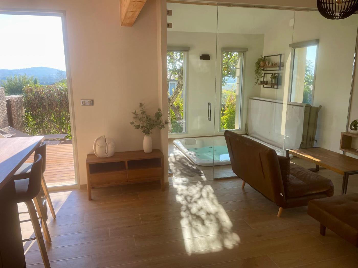 Maison 1 Chambre. Guests will have a special experience as this holiday home features a hot tub. Guests will find a stovetop, a refrigerator, a dishwasher and kitchenware in the fully equipped kitchen. The holiday home also has a barbecue. The air-conditioned holiday home offers a flat-screen TV with streaming services, a washing machine, a private entrance, a tea and coffee maker as well as garden views. The unit offers 1 bed.