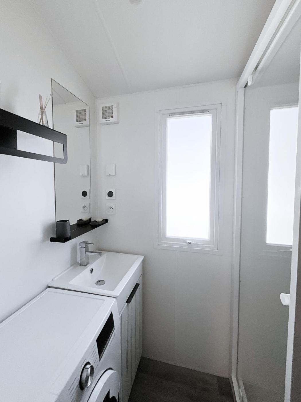 Mobile Home. This air-conditioned mobile home consists of 1 living room, 3 separate bedrooms and 2 bathrooms with a shower. Guests will find a stovetop, a refrigerator, a dishwasher and kitchenware in the kitchen. The mobile home also offers a barbecue. Featuring a terrace with garden views, this mobile home also provides a washing machine and a flat-screen TV. The unit offers 5 beds.