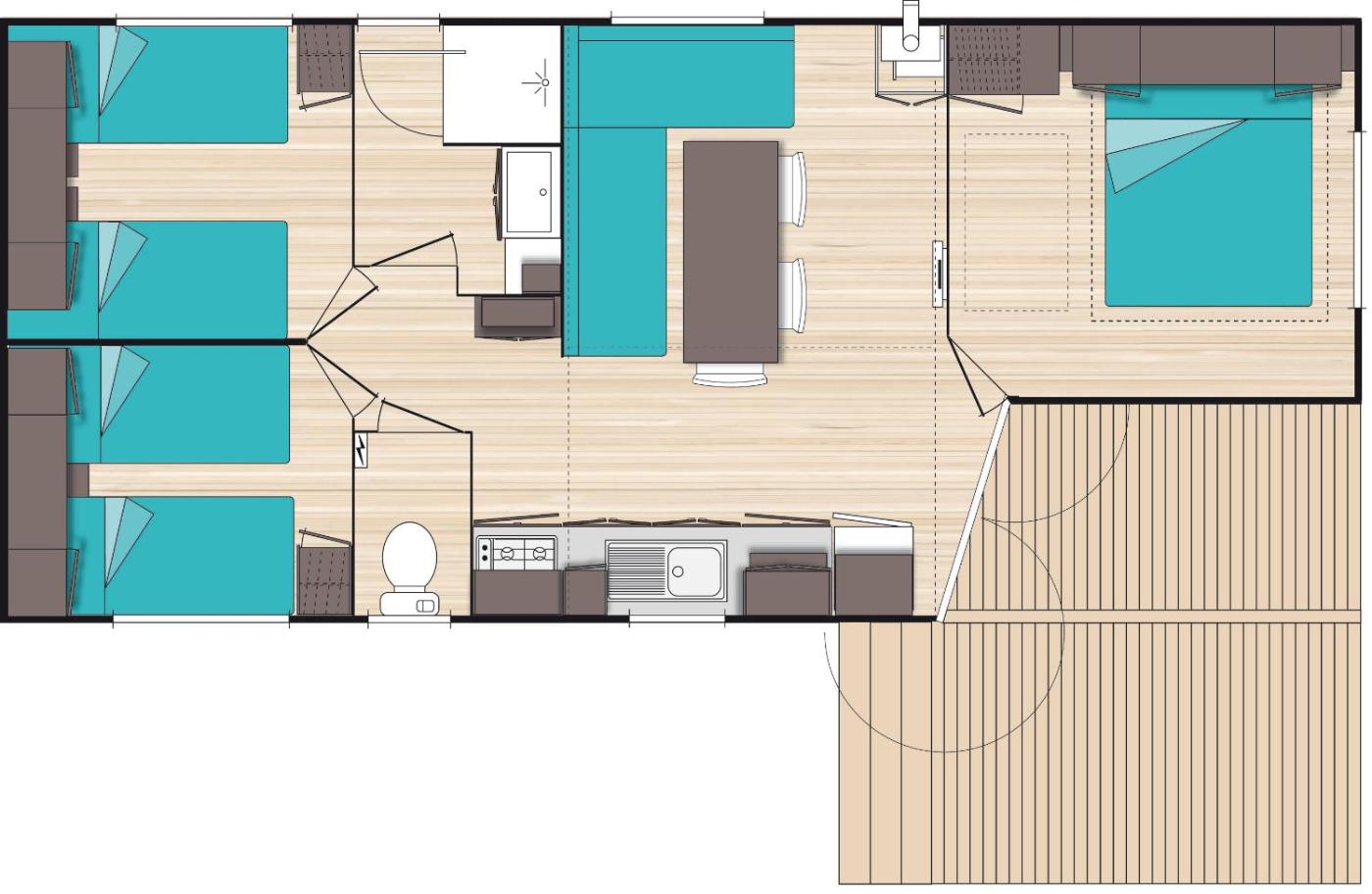 Mobile Home. This mobile home features a pool with a view. Featuring a private entrance, this air-conditioned mobile home comprises 1 living room, 3 separate bedrooms and 1 bathroom with a walk-in shower. In the kitchen, guests will find a stovetop, a refrigerator, kitchenware and a microwave. Boasting a terrace with mountain views, this mobile home also provides soundproof walls and a flat-screen TV. The unit offers 5 beds.