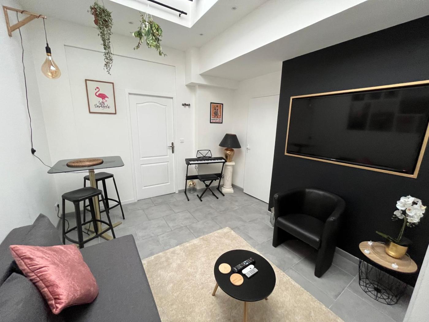 Appartement 1 Chambre. The apartments kitchenette, which features a refrigerator and a microwave, is available for cooking and storing food. The apartment provides a private entrance, soundproof walls, a minibar, a tea and coffee maker and a flat-screen TV with streaming services. The unit offers 2 beds.