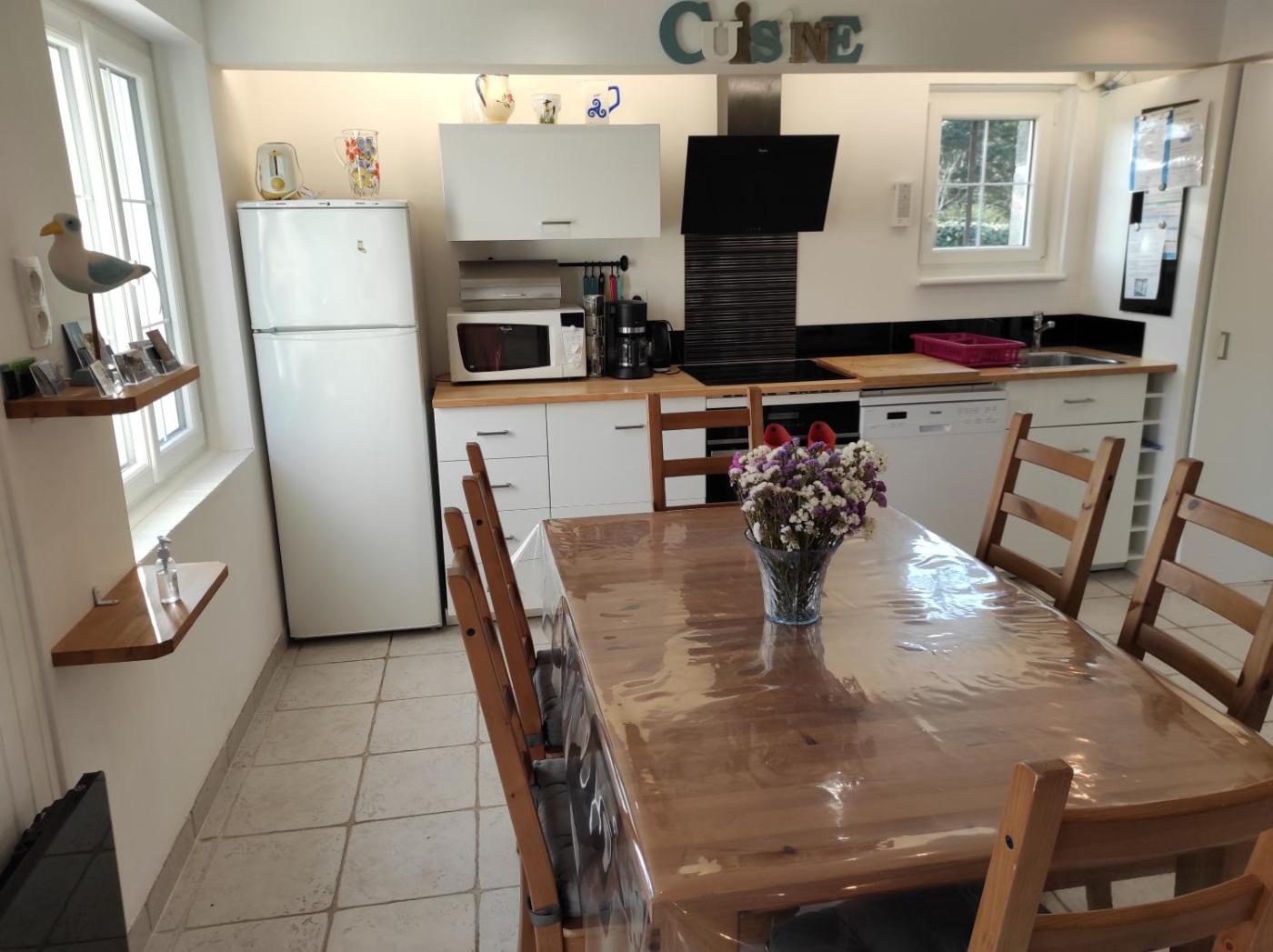 Maison 3 Chambres. Featuring a private entrance, this holiday home is comprised of 1 living room, 3 separate bedrooms and 1 bathroom with a walk-in shower and a hairdryer. Guests will find a stovetop, a refrigerator, a dishwasher and kitchenware in the fully equipped kitchen. The holiday home also has a barbecue. Boasting a terrace with garden views, this holiday home also offers a washing machine and a flat-screen TV with satellite channels. The unit offers 4 beds.
