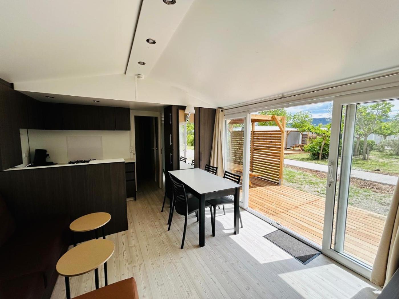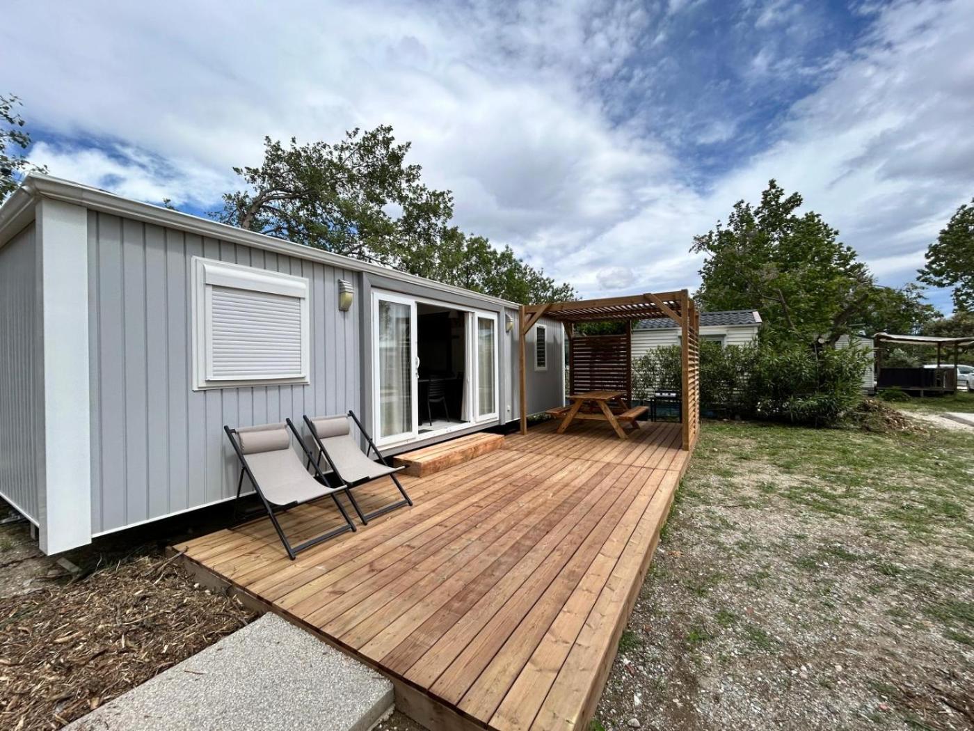 Mobile Home. Boasting 2 bedrooms, this mobile home has 1 bathroom with a shower, a seating area and terraceyou can relax. Guests will find a stovetop, a refrigerator, kitchenware and an oven in the well-equipped kitchen. The mobile home also includes a barbecue. Featuring an outdoor dining area, this mobile home also features air conditioning, a coffee machine and a TV. The unit offers 3 beds. ;