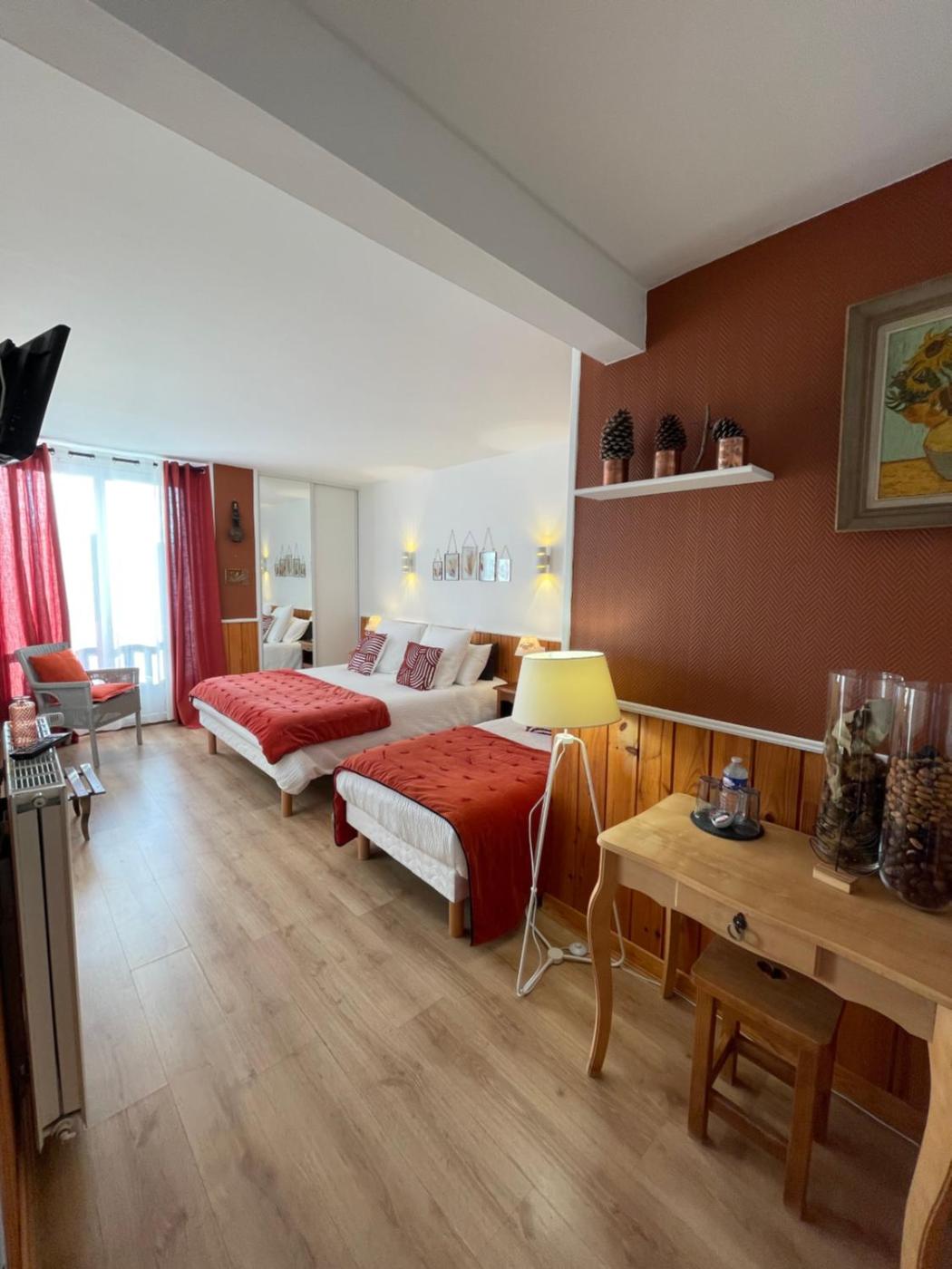 Chambre Lits Jumeaux Spacieuse. The twin room offers parquet floors, heating, as well as a private bathroom featuring a bath or a shower and a hairdryer. This twin room features a wardrobe, flat-screen TV, mountain views, as well as chocolate for guests. The unit offers 2 beds. ;