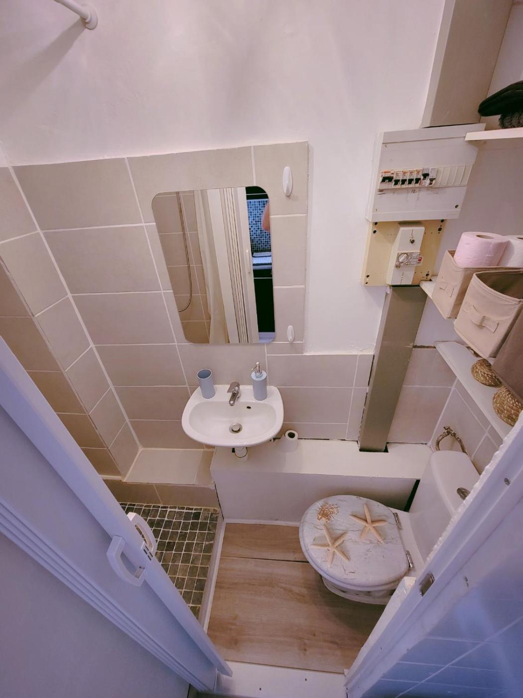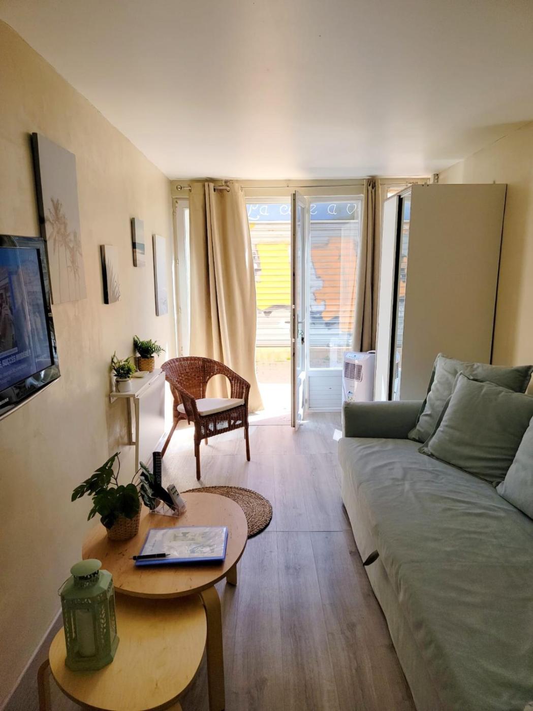 Appartement - Rez-de-Chaussée. The apartment has a private bathroom, air conditioning, a coffee machine, as well as a seating area with a flat-screen TV. The apartments kitchenette, which features a refrigerator and a microwave, is available for cooking and storing food. The apartment features a dining area, a wardrobe, a sofa, parquet floors, as well as a TV. The unit has 1 bed.
