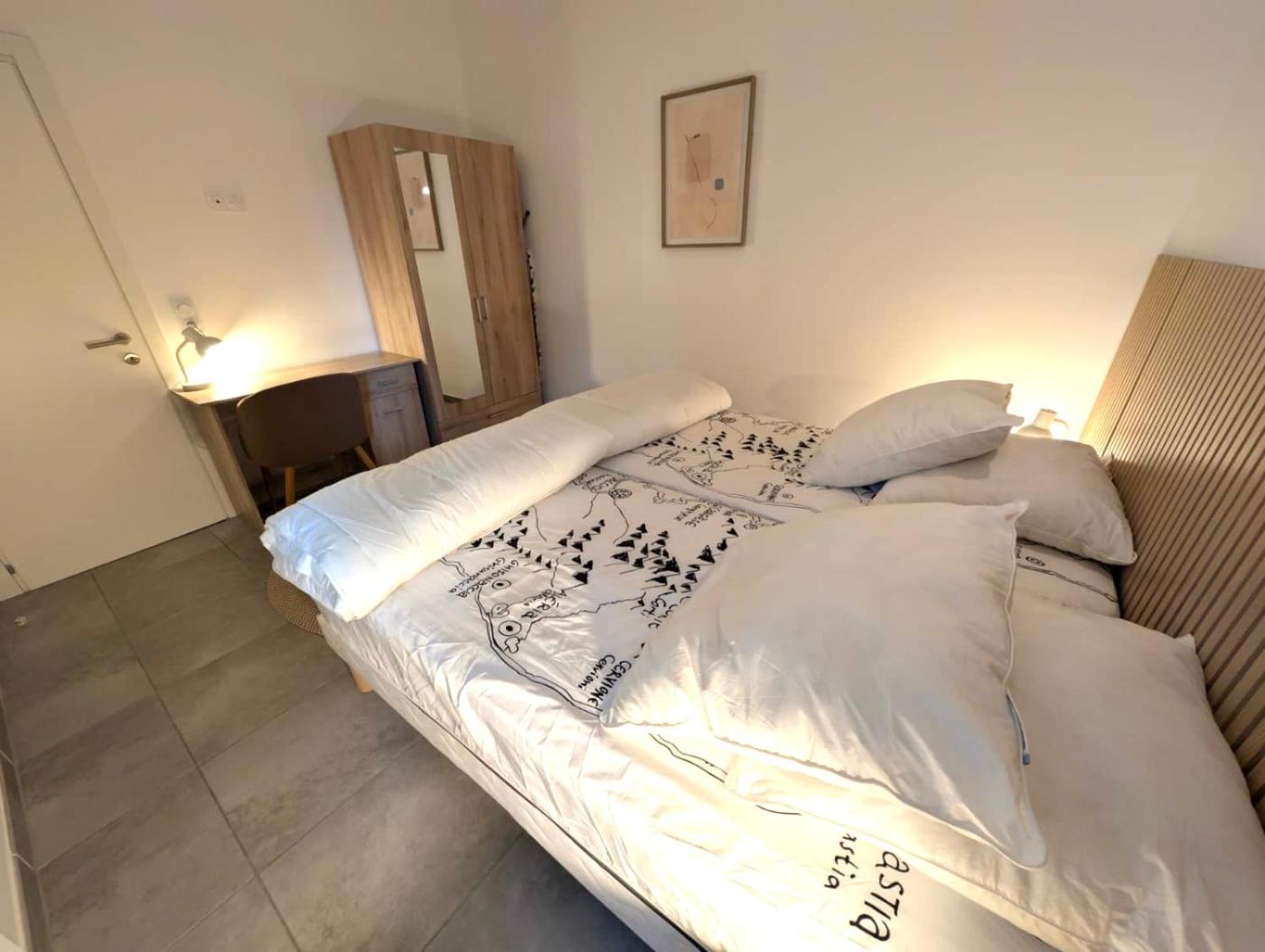 Two bedroom Duplex N°57. This air-conditioned apartment includes 1 living room, 2 separate bedrooms and 1 bathroom with a shower. In the fully equipped kitchen, guests will find a refrigerator, a dishwasher, kitchenware and a microwave. This apartment offers a tea and coffee maker, a TV and a terrace. The unit has 4 beds. ;