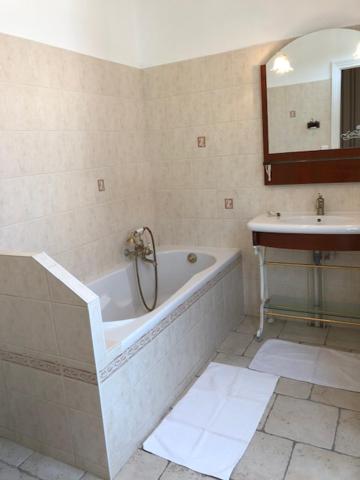 Chambre Familiale avec Baignoire. Providing free toiletries, this family room includes a private bathroom with a bath and a hairdryer. This family room features soundproof walls, a tea and coffee maker, a flat-screen TV and a terrace. The unit offers 5 beds. ;