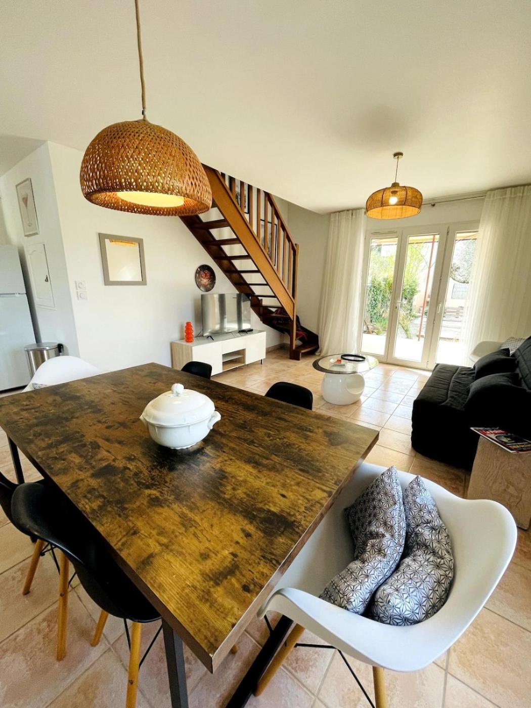 Maison 2 Chambres. Featuring a private entrance, this air-conditioned holiday home comprises 1 living room, 2 separate bedrooms and 1 bathroom with a bath and a hairdryer. Guests will find a stovetop, a refrigerator, a dishwasher and kitchenware in the kitchen. The holiday home also provides guests with a barbecue. Boasting a terrace with garden views, this holiday home also provides a washing machine and a flat-screen TV. The unit offers 2 beds.