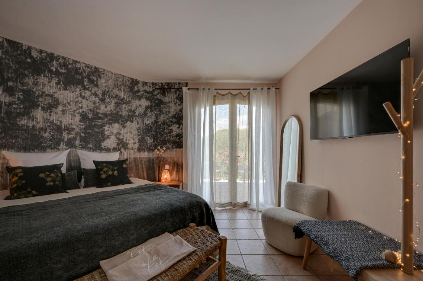 Chambre Double. Guests will have a special experience as this double room provides a pool with a view and a fireplace. In the fully equipped kitchen, guests will find a stovetop, a refrigerator, a dishwasher and kitchenware. The double room offers air conditioning, a washing machine, a terrace with garden views as well as a private bathroom featuring a shower. The unit offers 1 bed. ;