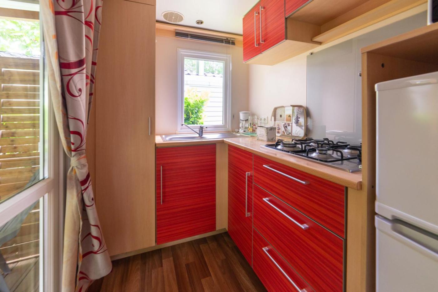 Mobile Home. This mobile home provides a pool with a view. Featuring 1 bedroom, this mobile home offers 1 bathroom with a shower, a seating area and terraceyou can relax. Meals can be prepared in the well-fitted kitchenette, which comes with a stovetop, a refrigerator, kitchenware and an oven. This mobile home features a washing machine, flat-screen TV, garden views, as well as winechampagne for guests. The unit has 1 bed. ;