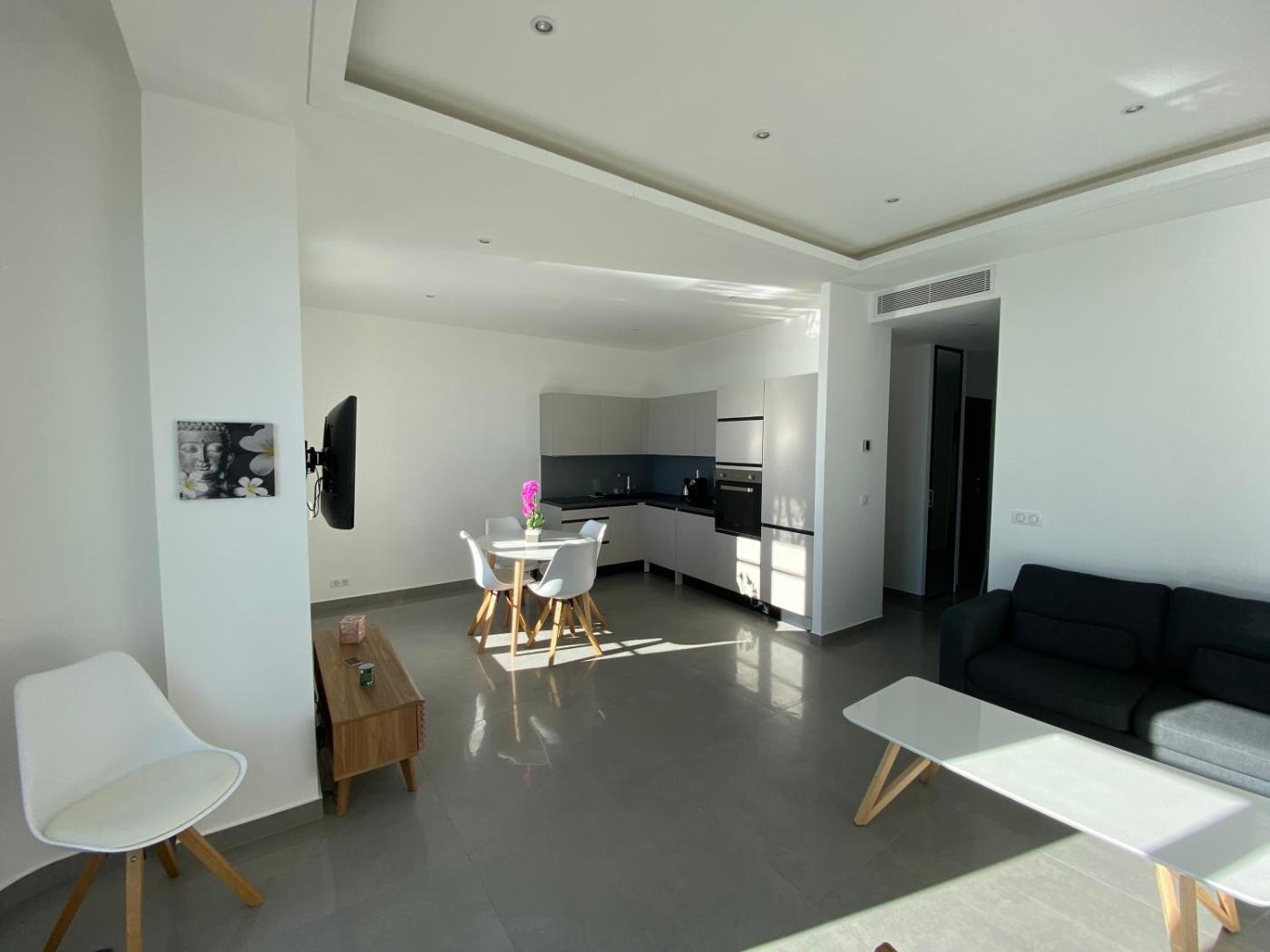 Appartement 2 Chambres. Cet appartement spacieux comprend un salon, 2 chambres séparées ainsi qu’une salle de bains avec une douche à l’italienne et des articles de toilette gratuits. La cuisine entièrement équipée est pourvue de plaques de cuisson, d’un réfrigérateur, d’un lave-vaisselle et d’ustensiles de cuisine. Cet appartement climatisé avec vue sur la mer dispose d’une télévision par câble à écran plat, d’un lave-linge, d’une entrée privée et de murs insonorisés. Ce logement comprend 3 lits.