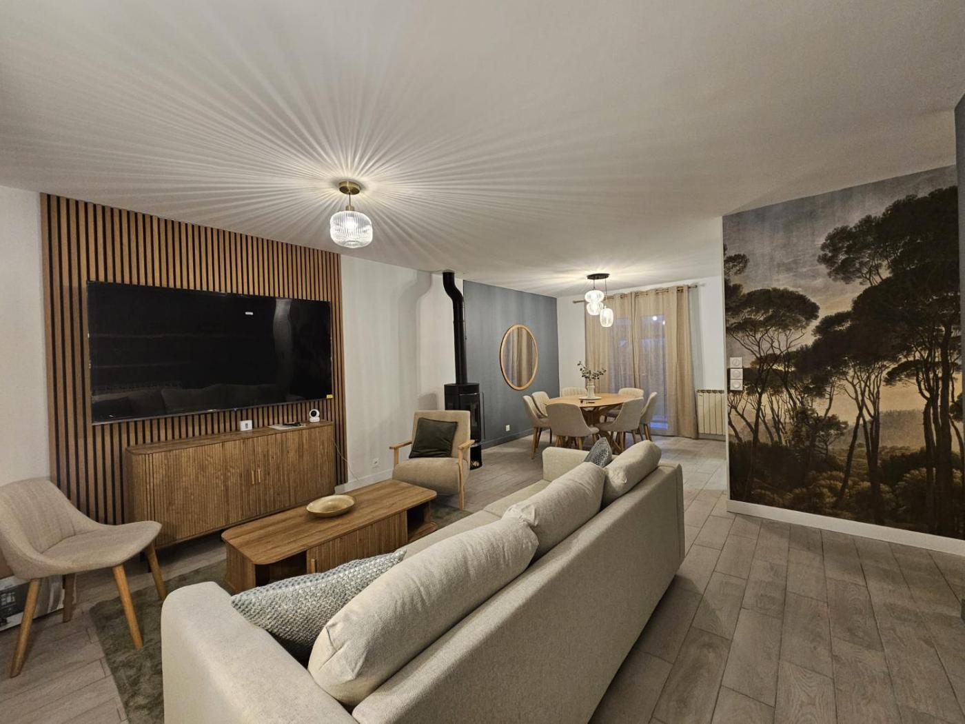 Maison 3 Chambres. The private pool and fireplace are the special features of this holiday home. Boasting a private entrance, this holiday home includes 1 living room, 3 separate bedrooms and 1 bathroom with a shower and a hairdryer. Guests will find a stovetop, a refrigerator, a dishwasher and kitchenware in the kitchen. The holiday home also features a barbecue. Featuring a terrace with garden views, this holiday home also offers a washing machine and a flat-screen TV. The unit has 5 beds.