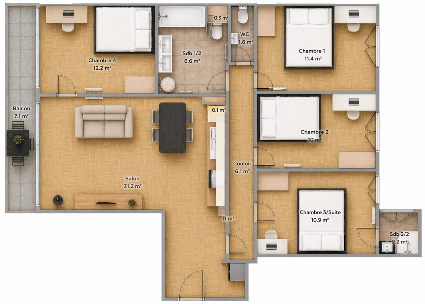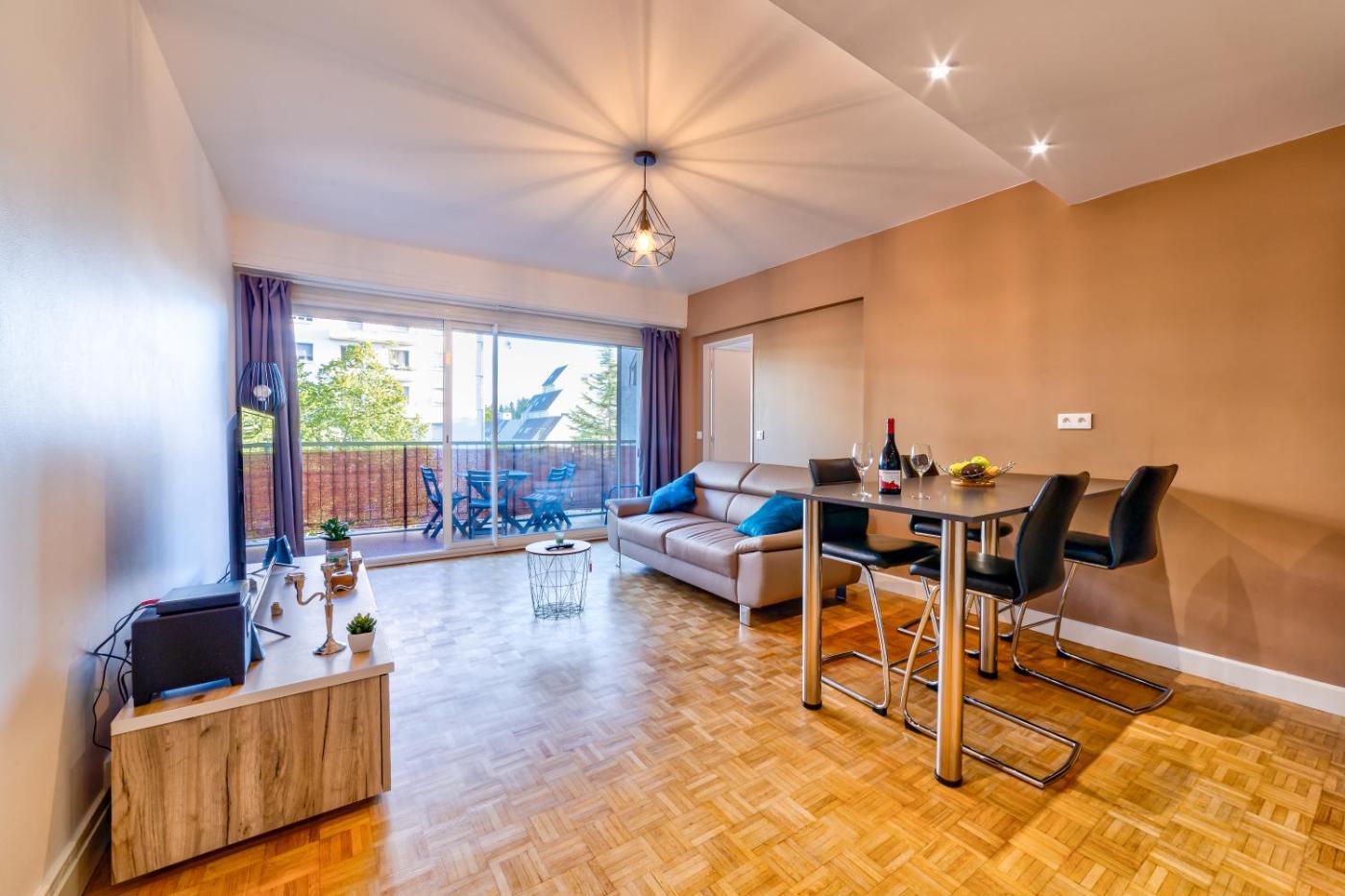 Appartement 4 Chambres avec Balcon. This spacious apartment consists of 1 living room, 4 separate bedrooms and 2 bathrooms with a shower and free toiletries. The kitchen is equipped with a stovetop, a dishwasher and an oven. This apartment features a washing machine, a seating area, flat-screen TV, as well as winechampagne for guests. The unit offers 4 beds.