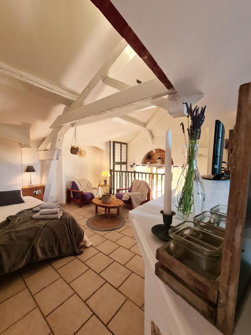 Suite avec Terrasse. Guests will have a special experience as this suite provides a pool with a view, a hot tub and a spa bath. Featuring a private entrance, this air-conditioned suite comprises 1 living room, 1 separate bedroom and 1 bathroom with a walk-in shower and a hairdryer. Guests will find a stovetop, a refrigerator, kitchenware and a microwave in the kitchen. The suite also provides guests with a barbecue. The unit features soundproof walls, garden views, a terrace and winechampagne is provided for guests. The unit offers 1 bed. ;