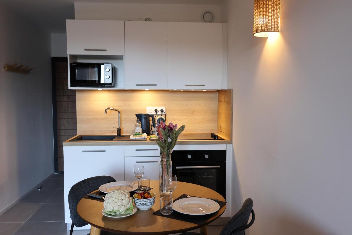Appartement 1 Chambre avec Vue sur le Parc. Guests will have a special experience as the apartment features a pool with a view. This apartment consists of 1 living room, 1 separate bedroom and 1 bathroom with a shower and free toiletries. Guests can make meals in the kitchen that is equipped with a stovetop, a refrigerator, kitchenware and an oven. The air-conditioned apartment provides a flat-screen TV with streaming services, a washing machine, a tea and coffee maker, a seating area as well as garden views. The unit offers 2 beds.