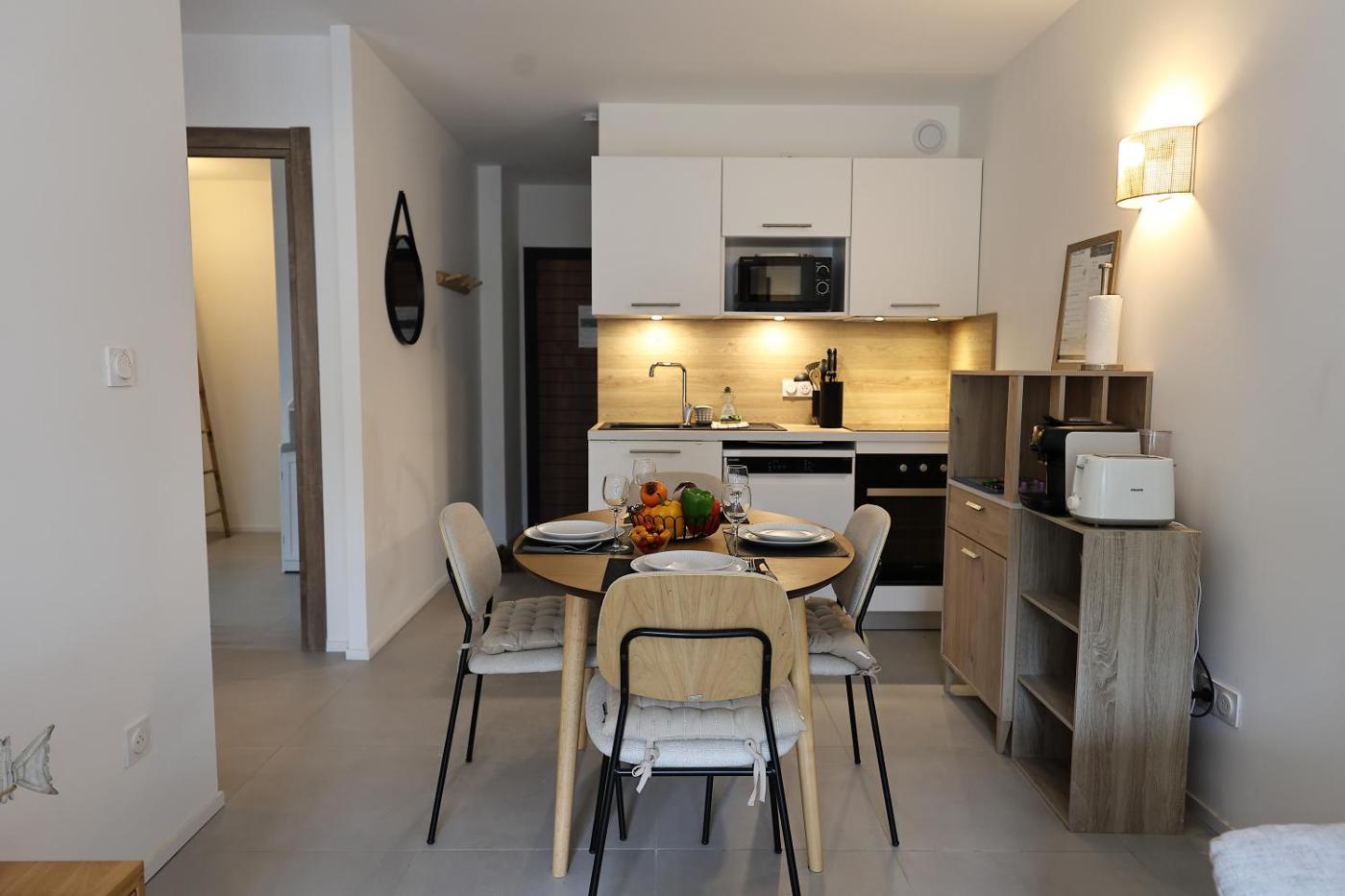 Appartement 1 Chambre. The pool with a view is a top feature of this apartment. This apartment comes with 1 living room, 1 separate bedroom and 1 bathroom with a walk-in shower and free toiletries. Guests can make meals in the kitchen that features a stovetop, a refrigerator, a dishwasher and kitchenware. The air-conditioned apartment features a flat-screen TV with cable channels, a washing machine, a tea and coffee maker, a seating area as well as garden views. The unit has 2 beds.