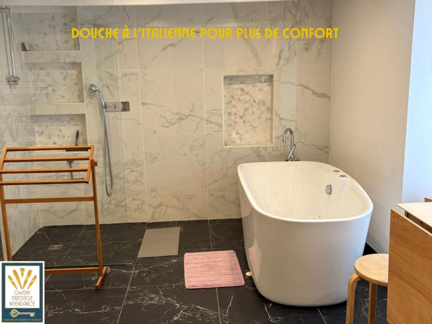 Vous séjournerez à respectivement 17 km et 18 km de ces lieux d’intérêt : Gare de Lorient et Stade du Moustoir. Laéroport le plus proche (Aéroport de Lorient Bretagne Sud) est à 27 km.