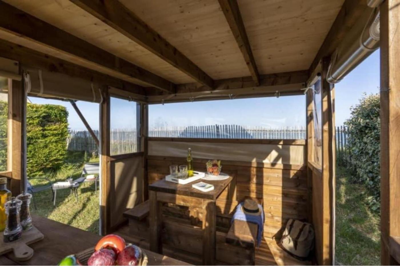 Cabane Insolite 2 Chambres - Vue sur Mer. Ce bungalow comprend un salon, 2 chambres séparées et une salle de bains avec une douche. Vous pourrez préparer vos repas dans la cuisine bien équipée, qui est munie de plaques de cuisson, d’un réfrigérateur, d’un micro-ondes et d’ustensiles. Ce bungalow dispose dune machine à café, dun coin salon, dun coin repas et dune terrasse avec vue sur la mer. Ce logement comporte 3 lits. ;