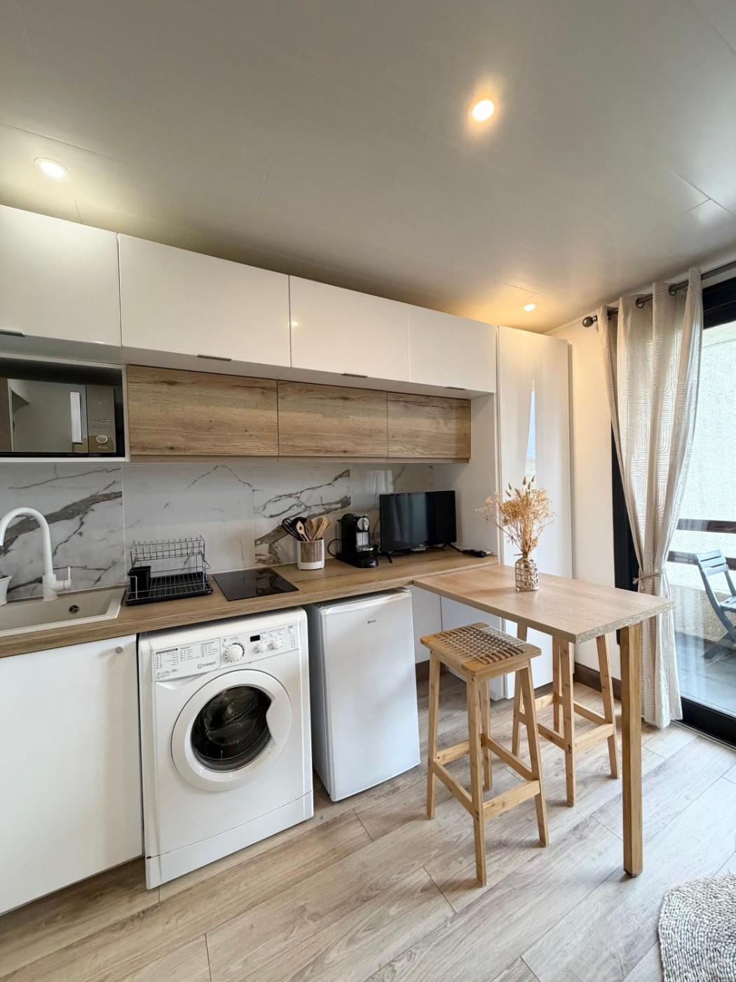 Appartement 1 Chambre. Guests will have a special experience as the apartment features a pool with a view. In the kitchen, guests will find a stovetop, a refrigerator, kitchenware and an oven. The air-conditioned apartment provides a flat-screen TV, a washing machine, a private entrance, soundproof walls as well as sea views. The unit offers 1 bed.