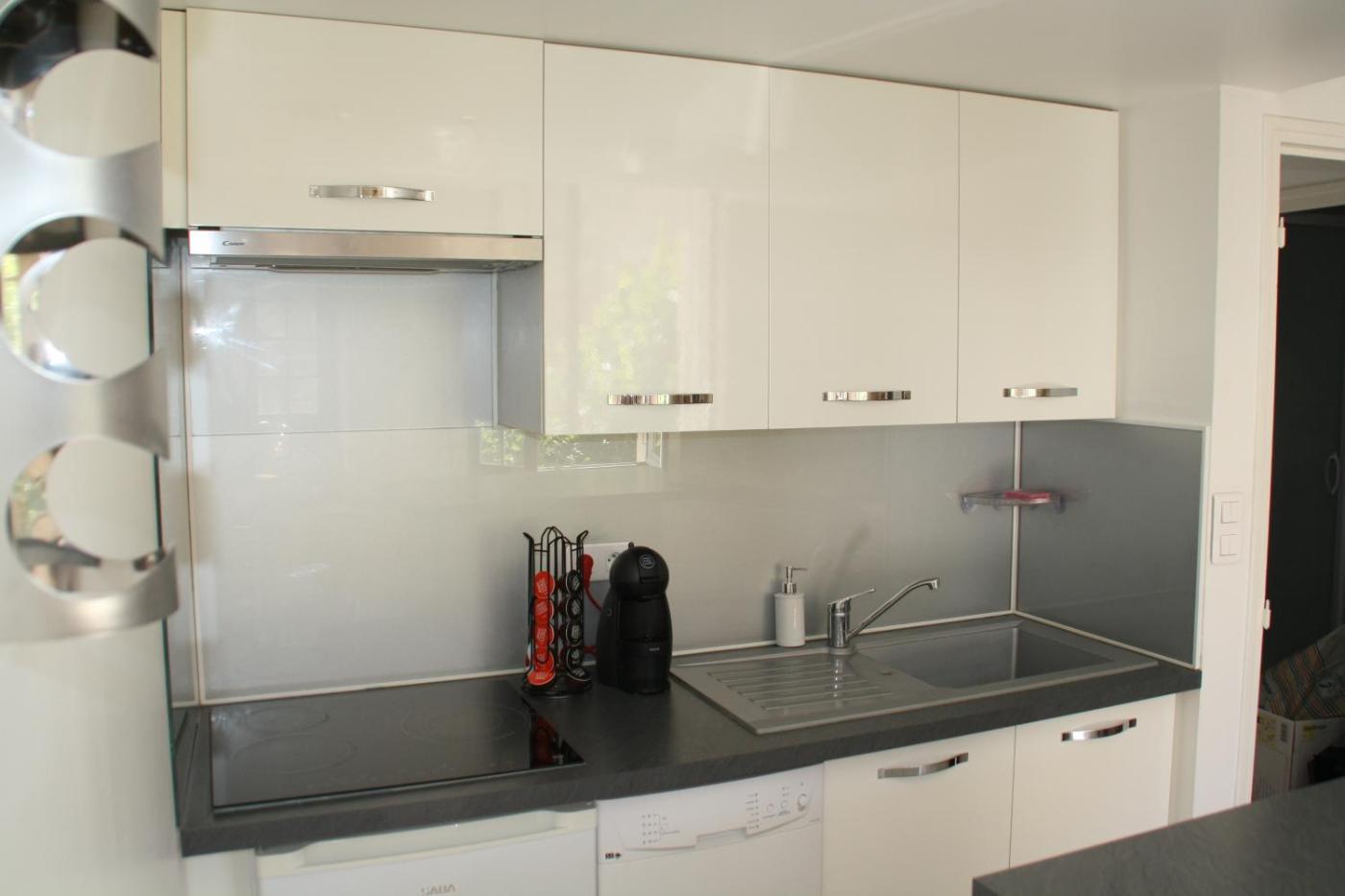 Appartement 1 Chambre. Boasting a private entrance, this apartment includes 1 living room, 1 separate bedroom and 1 bathroom with a shower and a hairdryer. In the kitchen, guests will find a stovetop, a refrigerator, a dishwasher and kitchenware. The apartment has parquet floors, a seating area with a flat-screen TV, a washing machine, a tea and coffee maker as well as city views. The unit has 2 beds.