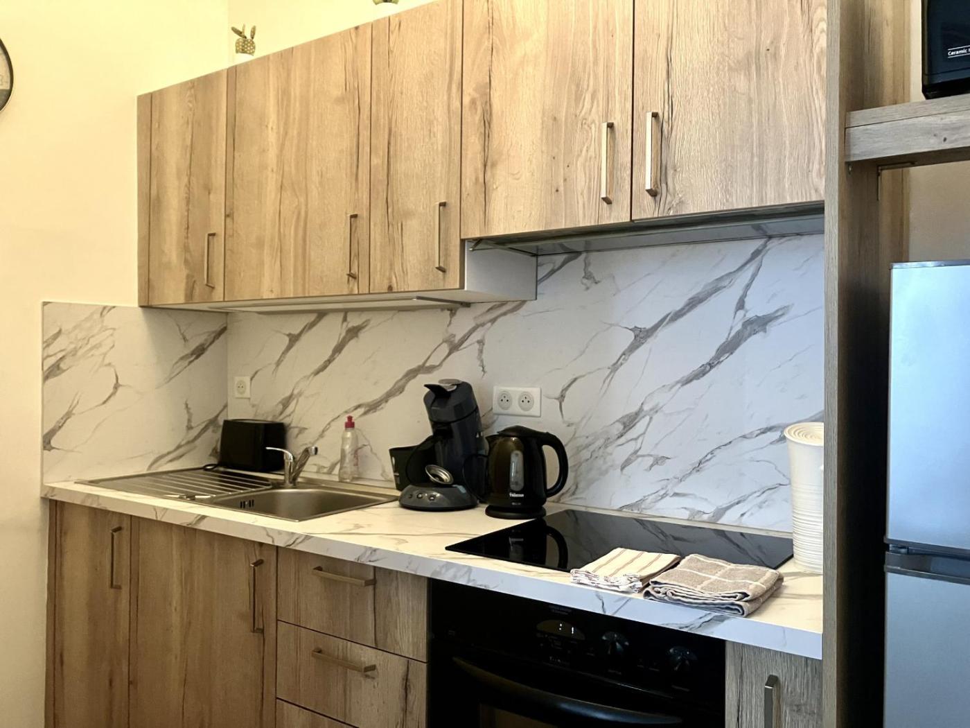 Appartement 1 Chambre Deluxe. This apartment includes a kitchen, a seating area, 1 separate bedroom and 1 bathroom with a shower and a hairdryer. The well-equipped kitchen has a stovetop, a refrigerator, kitchenware and an oven. The apartment offers a TV with satellite channels, a coffee machine, a dining area, a sofa as well as city views. The unit has 1 bed.