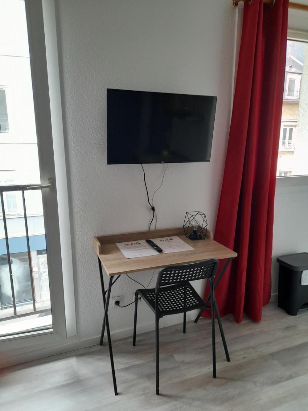 Appartement 1 Chambre. The well-fitted kitchenette has a stovetop, a refrigerator, kitchenware and a microwave. This apartment features a tea and coffee maker, heating, a flat-screen TV and a quiet street view. The unit has 1 bed.