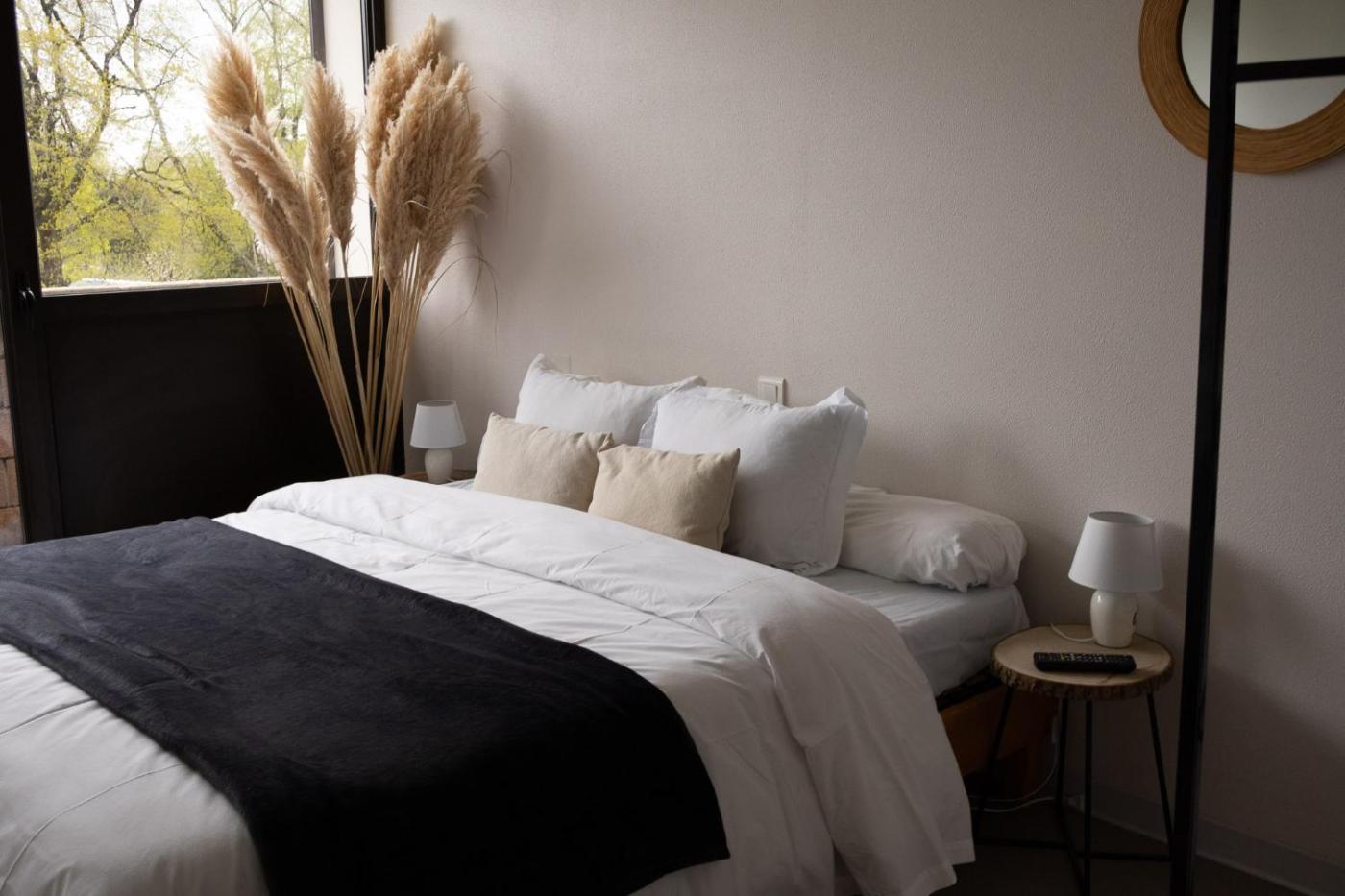 Chambre Double - Accessible aux Personnes à Mobilité Réduite. The double room provides a wardrobe and heating, as well as a private bathroom boasting a shower. The double room features soundproof walls, a tea and coffee maker, a dining area, a TV, as well as lake views. The unit has 1 bed. ;