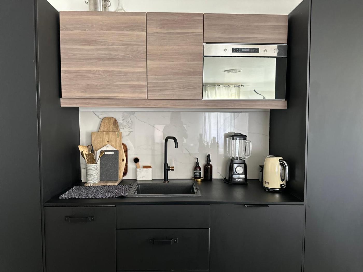 Cet appartement comporte 1 chambre, une télévision à écran plat, ainsi qu’une cuisine.