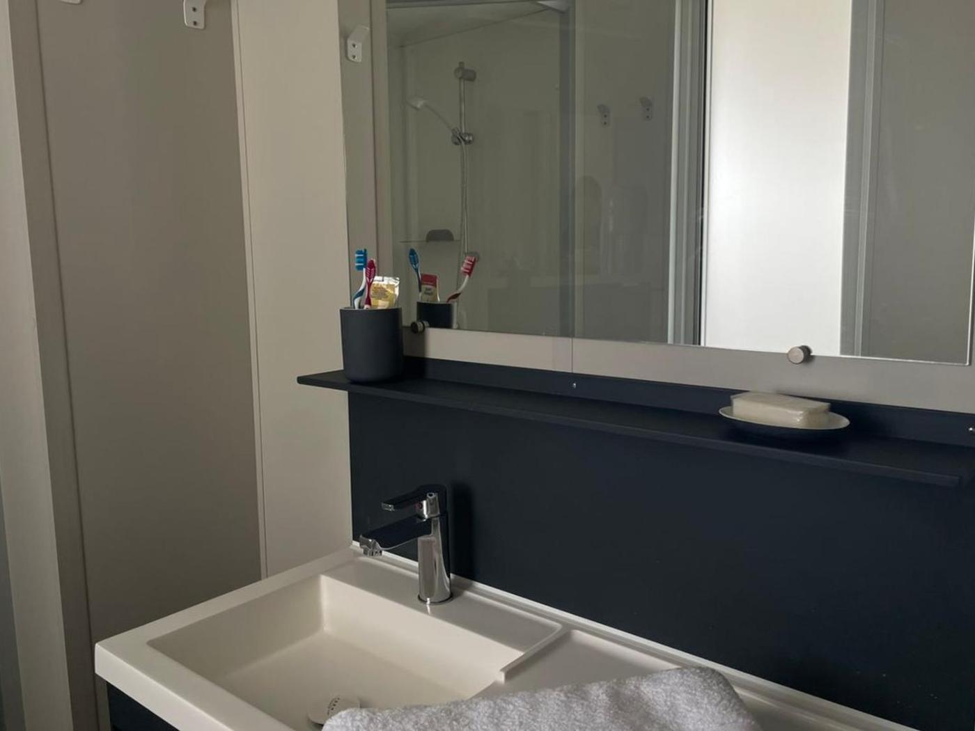 Mobile Home. Boasting a private entrance, this mobile home features 3 bedrooms, 1 bathroom and a kitchen. The well-fitted kitchen has a refrigerator, kitchenware and a microwave. Featuring a terrace, this mobile home also features a coffee machine, a dining area and a TV.