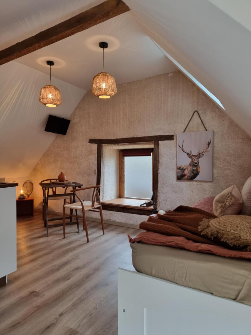 Studio avec Terrasse. Guests will find a stovetop, a refrigerator, kitchenware and a microwave in the kitchen. The studio also features a barbecue. This studio is comprised of a flat-screen TV with streaming services, a private bathroom as well as a terrace with garden views. The unit has 1 bed. ;