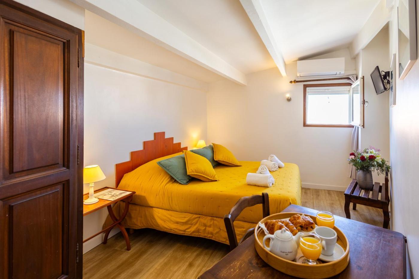 Chambre Double Confort avec Terrasse. The double room features air conditioning, a tea and coffee maker, as well as a private bathroom boasting a walk-in shower and a hairdryer. Featuring a terrace, this double room also provides a wardrobe, a tiled floor and a flat-screen TV. The unit has 1 bed. ;