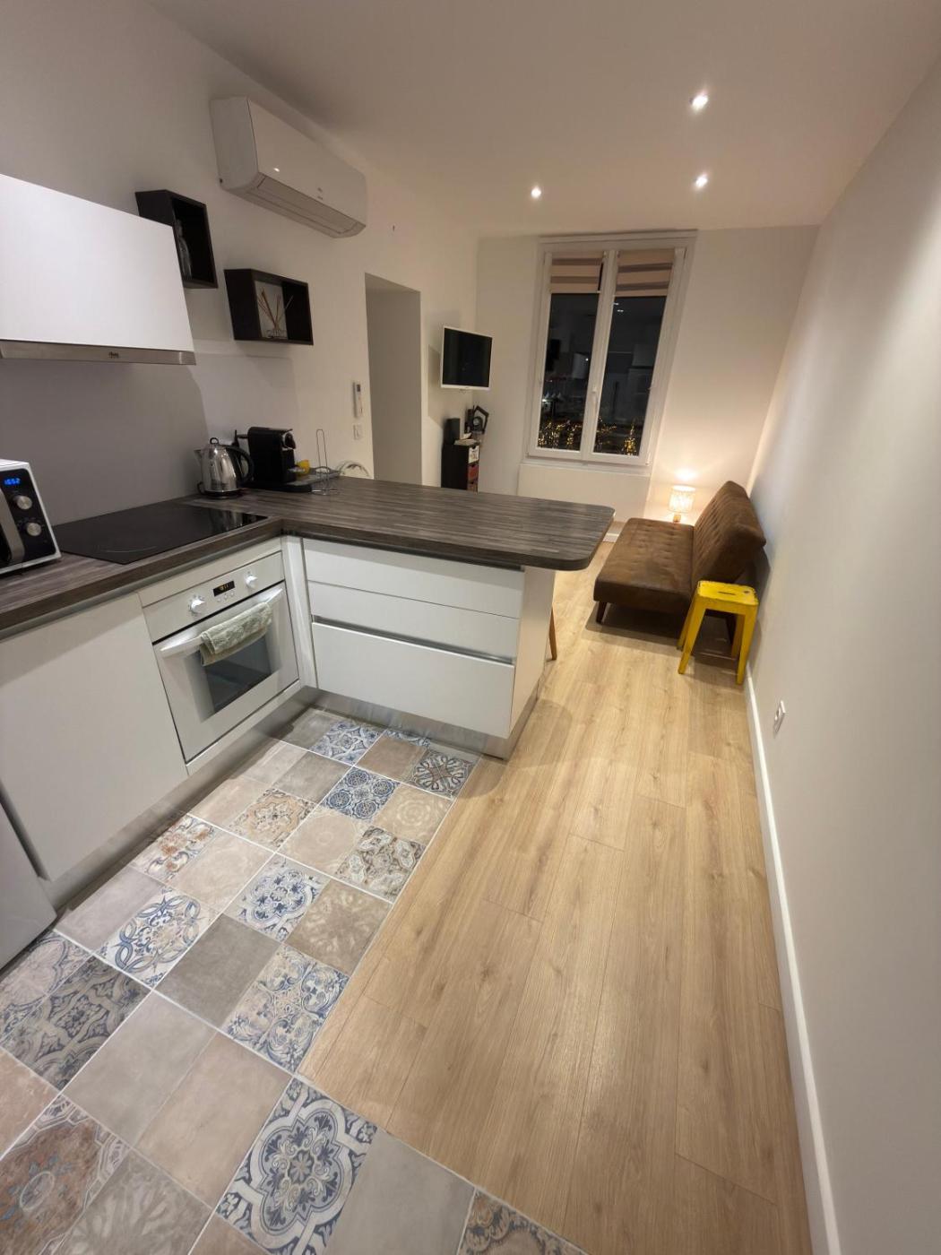 Appartement 1 Chambre. The apartments kitchen is available for cooking and storing food. The apartment offers air conditioning, a washing machine, heating, as well as a flat-screen TV. The unit has 1 bed.