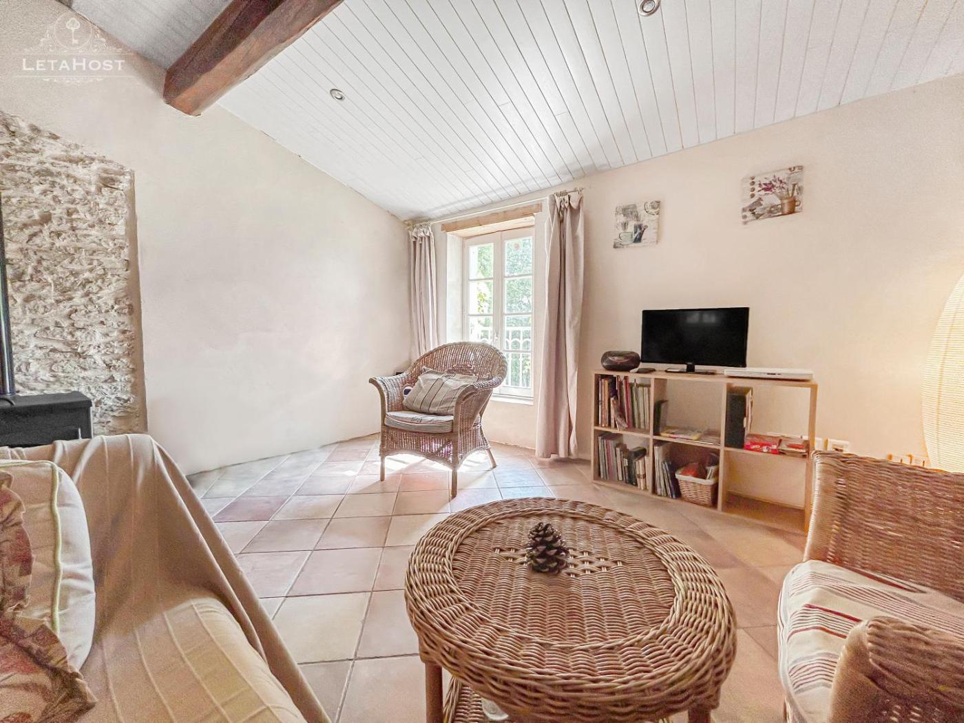 Maison 2 Chambres. This holiday home features a pool with a view and a fireplace. Boasting a private entrance, this holiday home features 1 living room, 2 separate bedrooms and 1 bathroom with a shower and a hairdryer. Guests will find a stovetop, a refrigerator, a dishwasher and kitchenware in the kitchen. The holiday home also comes with a barbecue. Featuring a terrace with garden views, this holiday home also features a washing machine and a flat-screen TV. The unit has 5 beds.