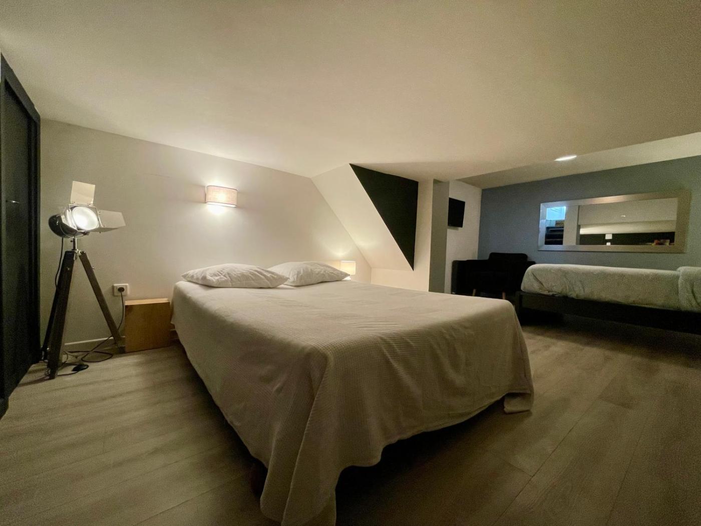 Appartement Loft 1 Chambre. This apartment consists of 1 living room, 1 separate bedroom and 1 bathroom with a walk-in shower. The fully equipped kitchen has a stovetop, a refrigerator, kitchenware and a microwave. The apartment features parquet floors, a seating area with a flat-screen TV with streaming services, soundproof walls, a coffee machine, as well as a sofa. The unit offers 2 beds.