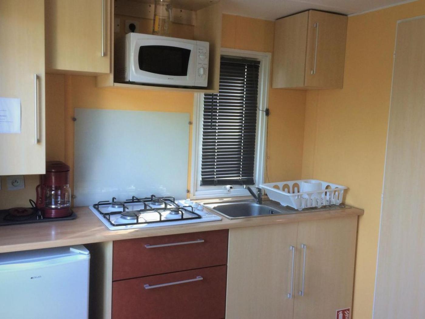 Mobile Home. Boasting 1 bedroom and 1 bathroom, this mobile home has a living room and terraceyou can relax. The mobile homes kitchen, which features kitchenware and a microwave, is available for cooking and storing food. This mobile home has a private entrance, a dining area, a TV and outdoor furniture.