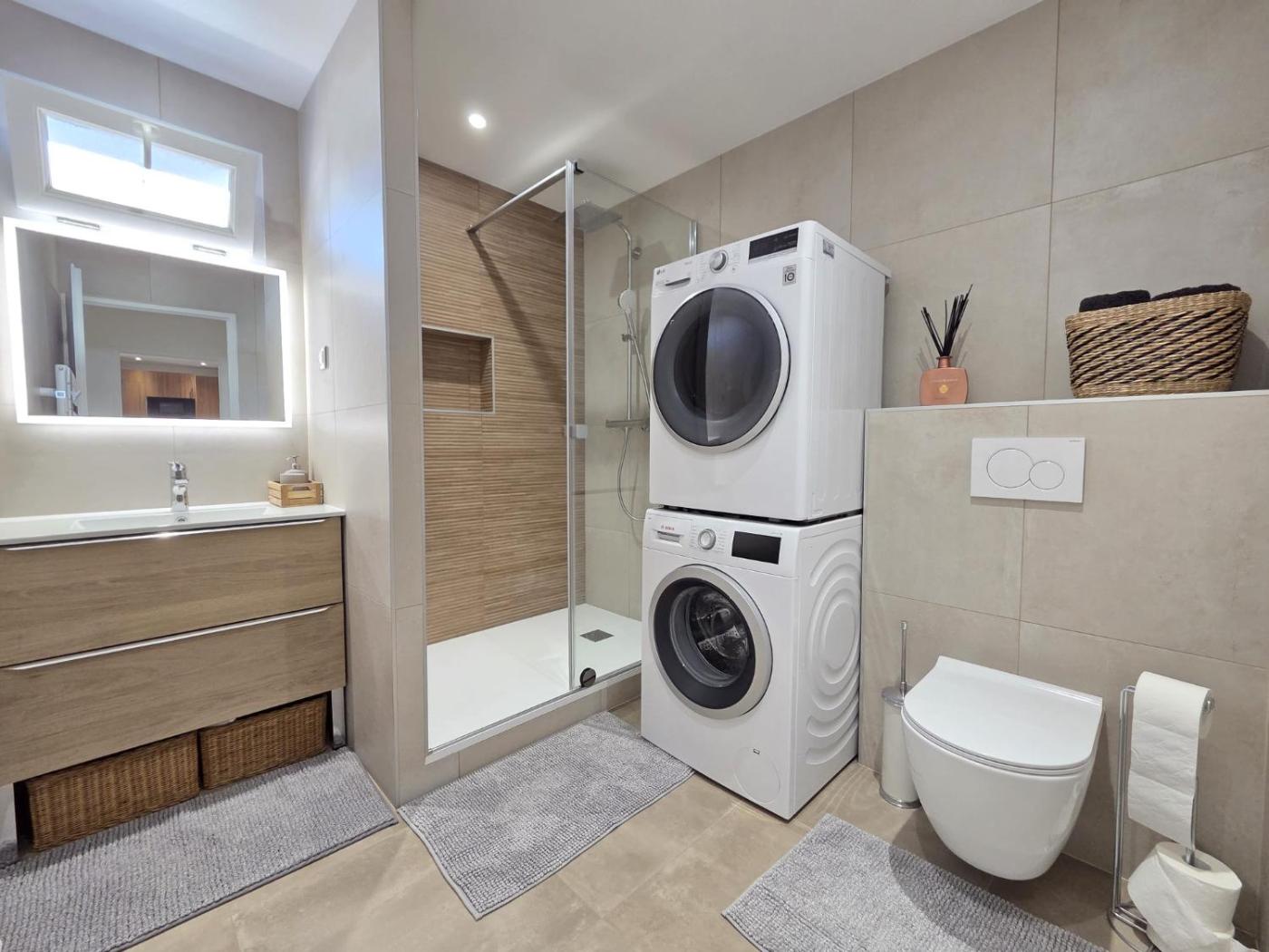 Appartement 3 Chambres. Guests can make meals in the kitchen that comes with a stovetop, a refrigerator, a dishwasher and an oven. The air-conditioned apartment provides a flat-screen TV with cable channels, a washing machine, a coffee machine, a seating area as well as garden views. The unit offers 3 beds.
